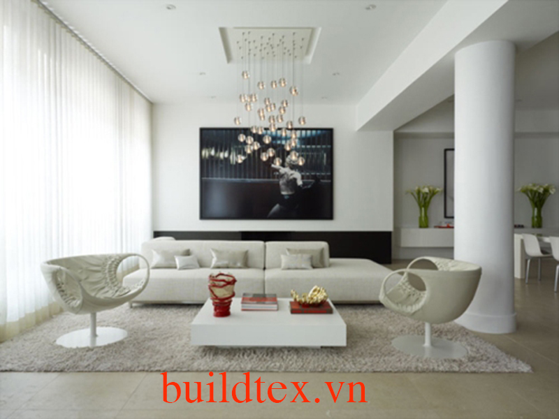 Sử dụng sơn tường hoặc nội thất màu trắng cho phòng khách sẽ tạo một không gian rất sang trọng, quý phái và tạo cảm giác rất tinh khiết. Màu trắng là màu trung lập nhưng nếu biết sử dụng kết hợp tinh tế sẽ thể hiện 1 cá tính rất mạnh.