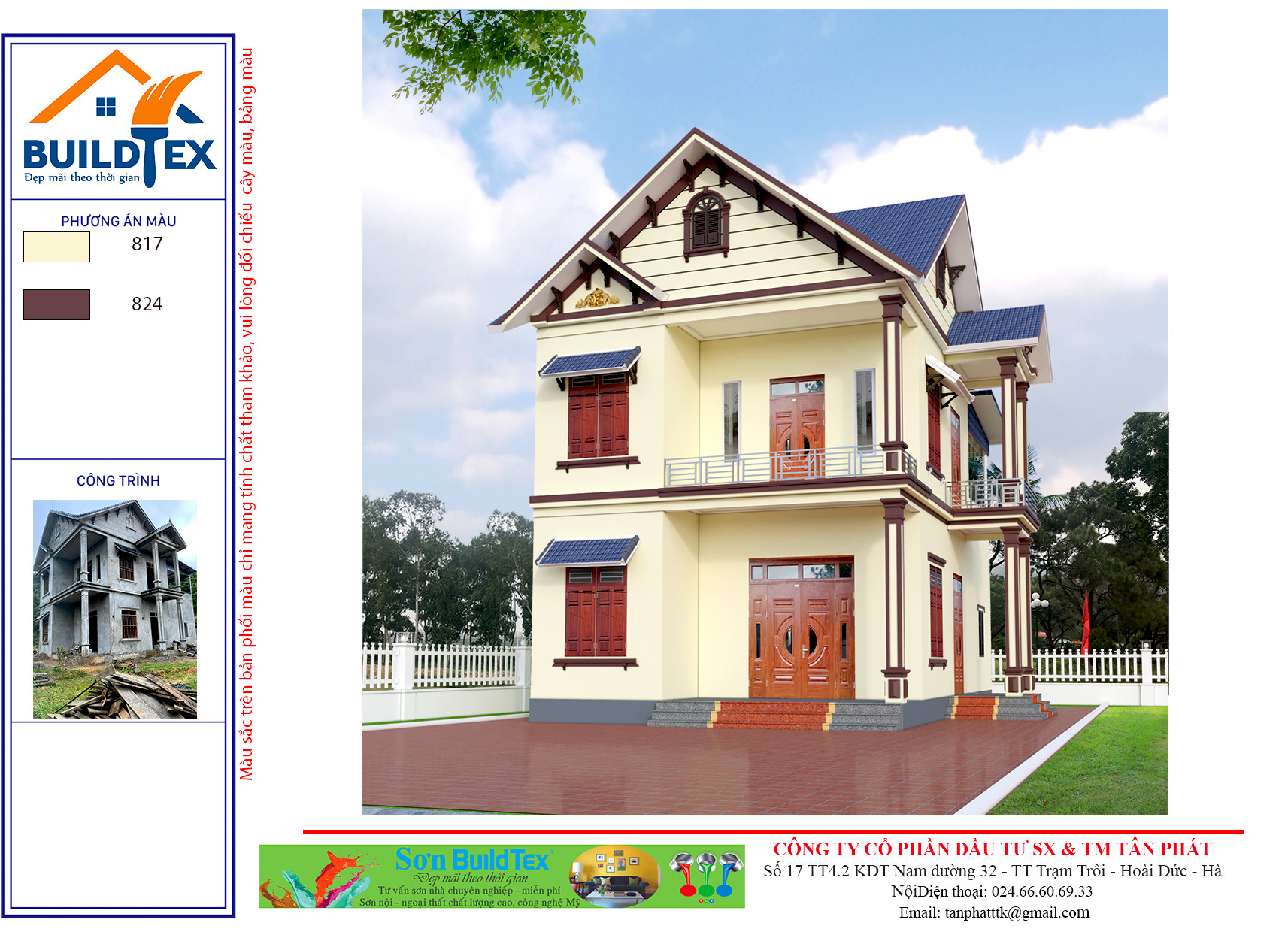 Hãng sơn BuildTex đã có kinh nghiệm hơn 10 năm xây dựng chất lượng, niềm tin, luôn đồng hành cùng mọi nhà từ khâu tư vấn, chọn màu, phối màu, thi công, bảo hành để quý khách yên tâm thoải mái chọn lựa, luôn đưa ra giải phát tốt nhất cho ngôi nhà bạn. Để được tư vấn, phối màu miễn phí, quý khách liên hệ hotline 24/24: 024.666.06.933 chúng tôi luôn sẵn sàng tới mọi công trình.