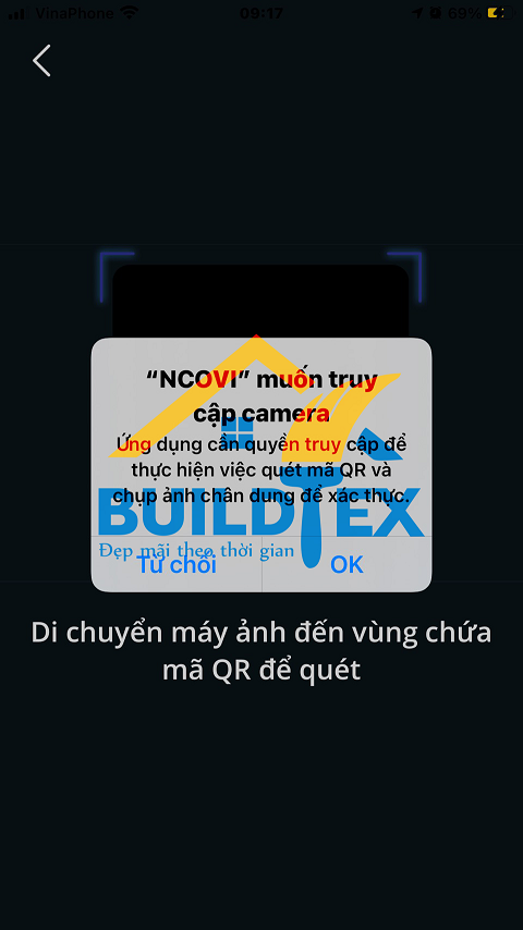 Bước 3: Di chuyển máy ảnh đến vùng chứa mã QR tại các điểm kiểm dịch để quét. Ứng dụng có hỏi "NCOVI" muốn truy cập camera các bạn nhớ click "OK" để đồng ý nhé.