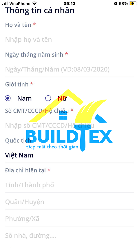 Bước 2: Trong lần đầu đăng nhập, ứng dụng sẽ yêu cầu người dùng đăng ký mới và nhập đầy đủ và chính xác các Thông tin cá nhân, đặc biệt là các mục được đánh dấu *