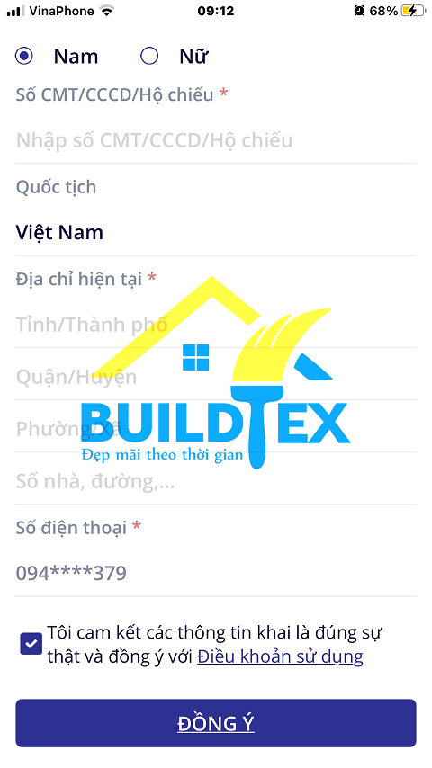 Bạn nhập đầy đủ thông tin vào các trường có sẵn, đặc biệt là các trường có dấu sao.