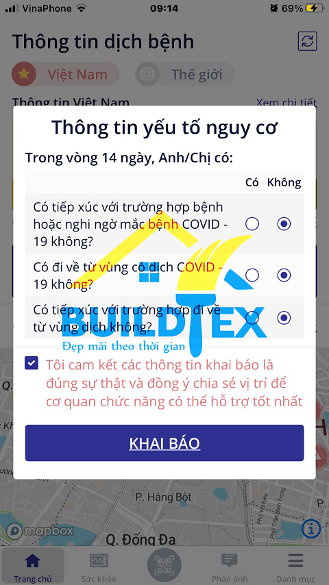 Bước 4: Khai báo thông tin yếu tố nguy cơ (Có/không) và ấn "Khai báo".